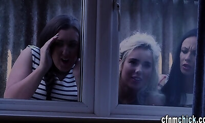 Dominant cfnm babes trying out 2 cocks