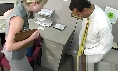 Bossy blonde office bitch dominates and humiliates workers