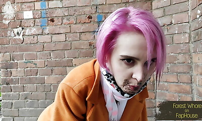 Pissed in face: punk nymph gets piss in piercing throat - outdoor!