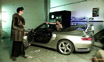 Impressive massage of the back, arms, ass, legs and feet from a slave for a naked Dominatrix.