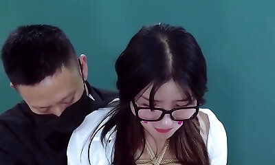 Naughty teacher in glasses and bondage want to show you fresh toy for butt
