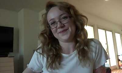 Nerdy ash-blonde in glasses gets intimate with her perverted step dad