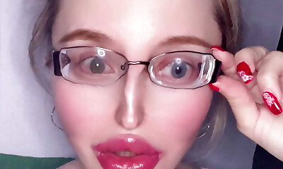 Passionate salivating close-up blowjob – cute girl in glasses