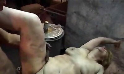 Young fellow fucks old blonde whore in the basement