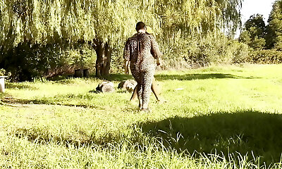 Nude boobs and bare cunt banging on the picnic court