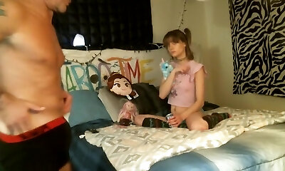 сводная сестра входит в мою комнату, чтобы полакомиться моим членом из любопытства