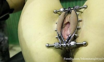 He puts a muff clamp in my pussy and plays with it. I's winter, I'm bearing the cold ( BdsmNaughtyGirl )