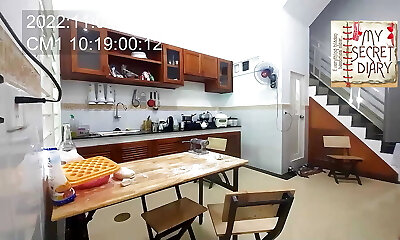 Housewife in stocking in the kitchen. Naked maid gets an orgasm while cooking. c3 Date