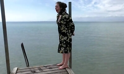 swallowing pee on the beach public risk high, very first season!!! - PissVids