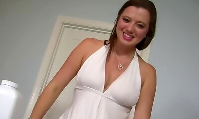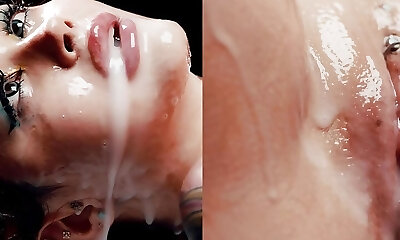 Bukkake! Cum on face and mouth of 18 year old monstrous tits teen in lingerie!