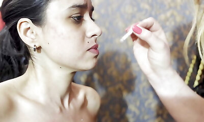 Dominant white blonde bitch make Brazilian brunette suck her fist