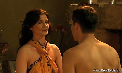 захваченная китаянка раздета, связана веревкой и пахана в заброшенном дворце