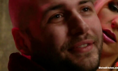 наклонился над покоренной лесбиянкой gimp, обработанной мадам