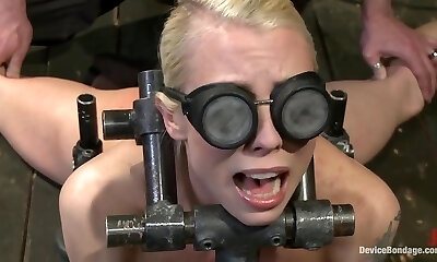 порабощенная стройная татуированная светловолосая получает открывающиеся ноздри и люк